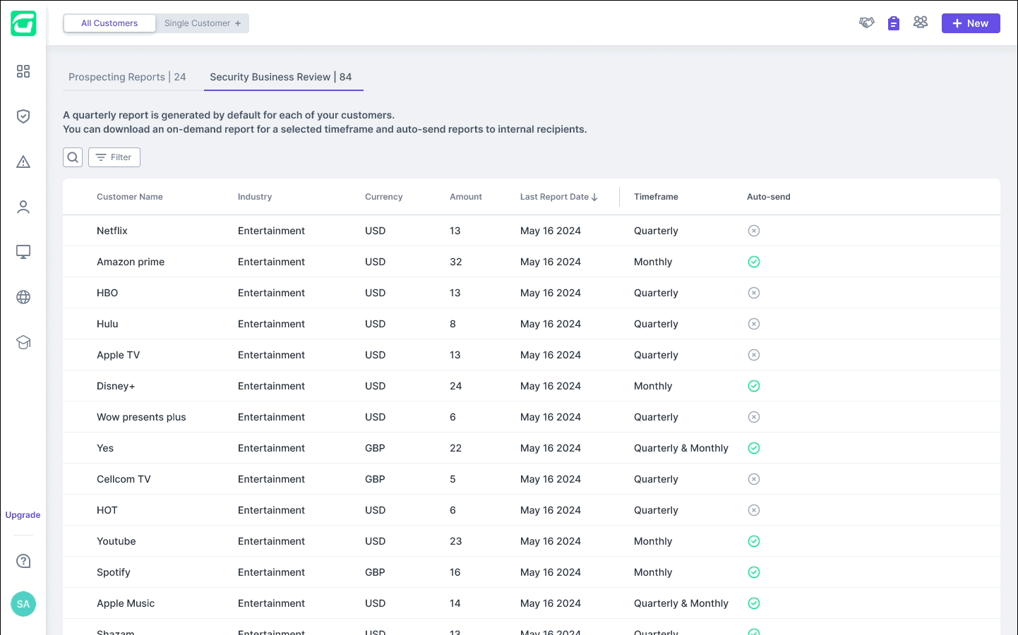 To support both proactive and reactive communication, we designed a flexible flow for creating reports directly within the platform. MSPs can generate on-demand reports for specific time frames when needed, or schedule recurring reports to be sent automatically on a monthly or quarterly basis. This empowers them to keep clients consistently informed with minimal effort, while reinforcing the value of their ongoing security efforts.
